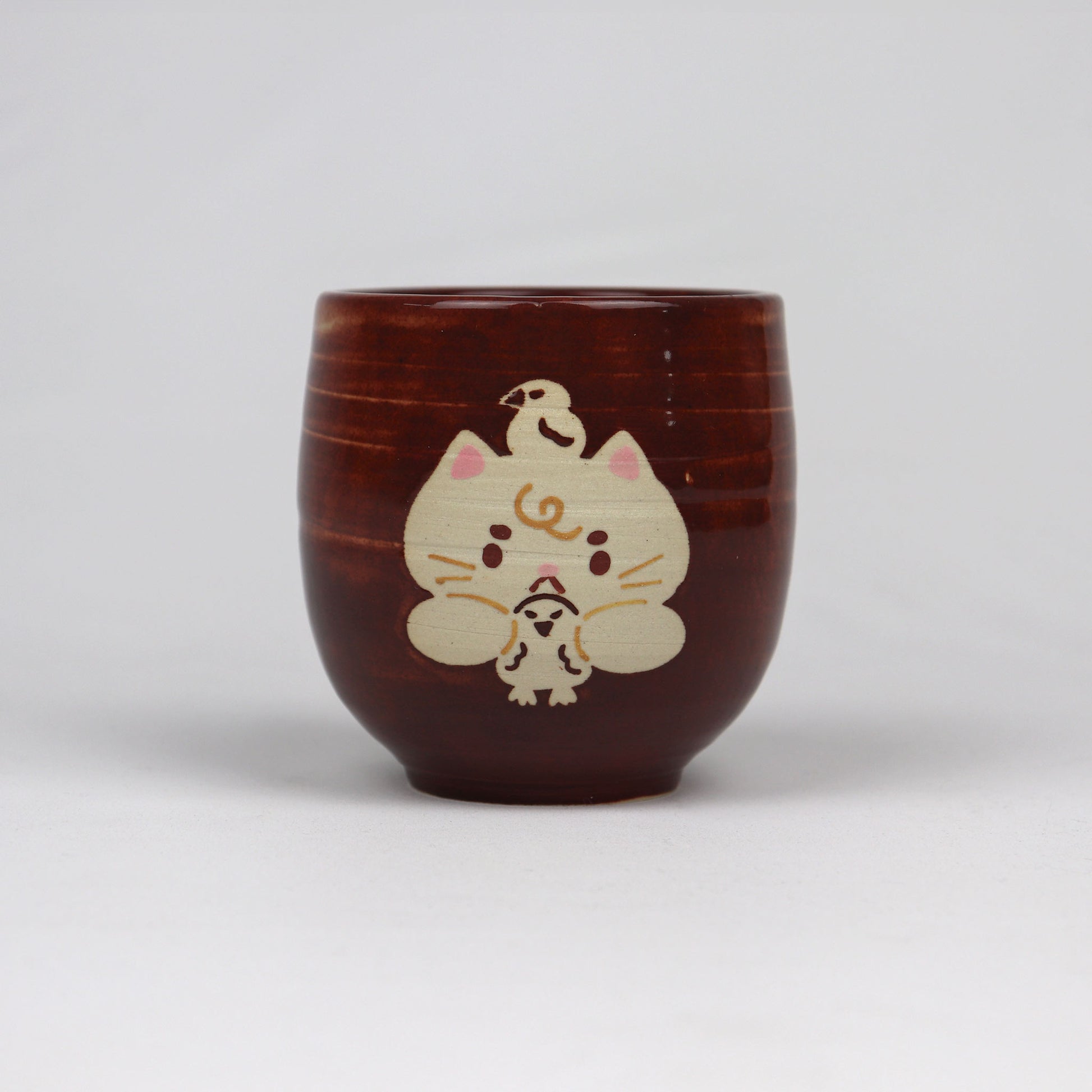 Cat Latte Mug - Brown with Cat Catching Bird