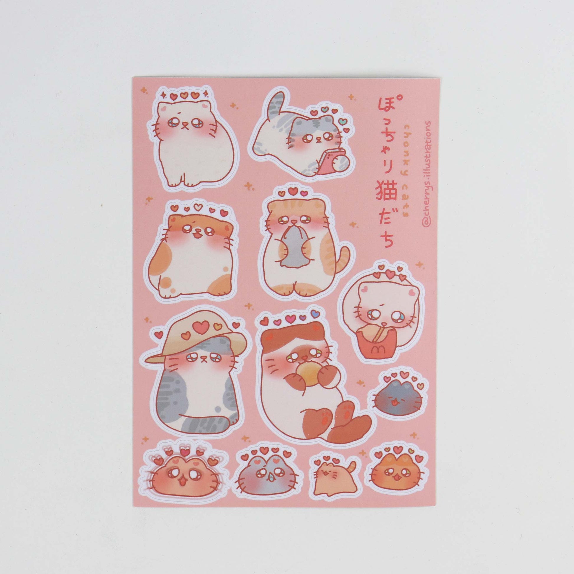 The Chonky Cats V5 sticker sheet by Cherry’s Illustrations features an adorable collection of round kitties in their sweetest moments. From curious glances to cozy naps, these plump kitty friends will make everyone say "AWWWWW".