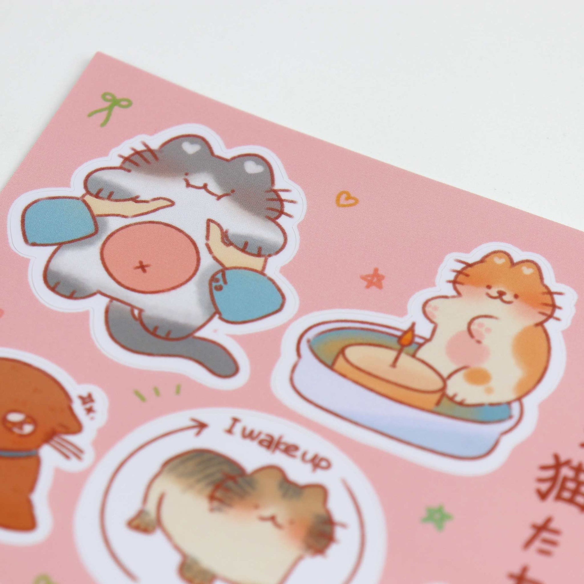 This adorable collection features a variety of plump, sleepy, and mischievous kitties in the cutest situations - from cozy naps to silly antics. Each chubby kitty has a shining personality, making this sheet a must-have for both cat lovers and sticker hoarders.