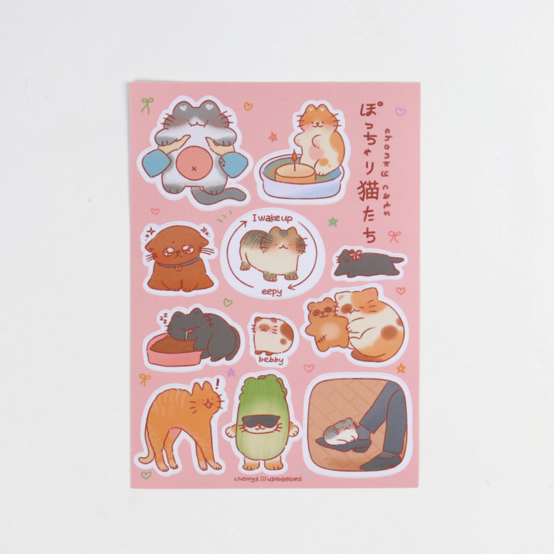 Introducing the Chonky Cats V9 sticker sheet by Cherry’s Illustrations!