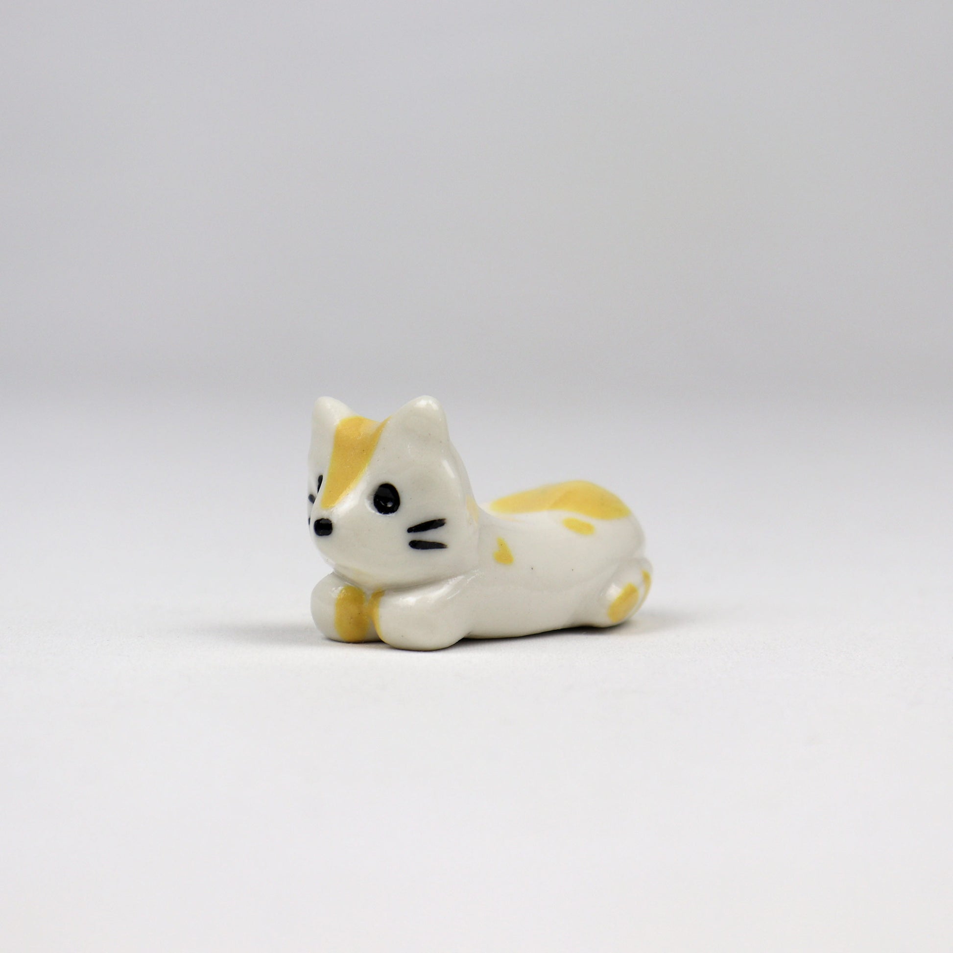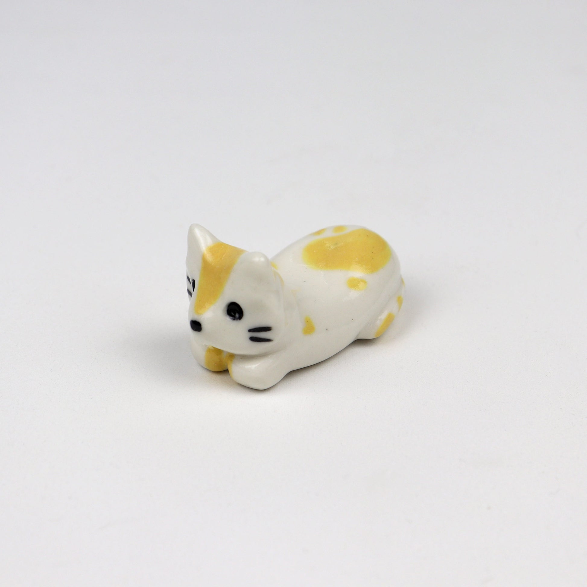 This handmade ceramic cat chopstick holder is both practical and adorable. Shaped as a little cat loaf, it keeps your chopsticks off the table while adding a bit of character to your meal. This piece is one of a kind, with hand-painted yellow features on a smooth white ceramic body. Simple, sweet, and made with care—perfect for cat lovers who appreciate the little details.
