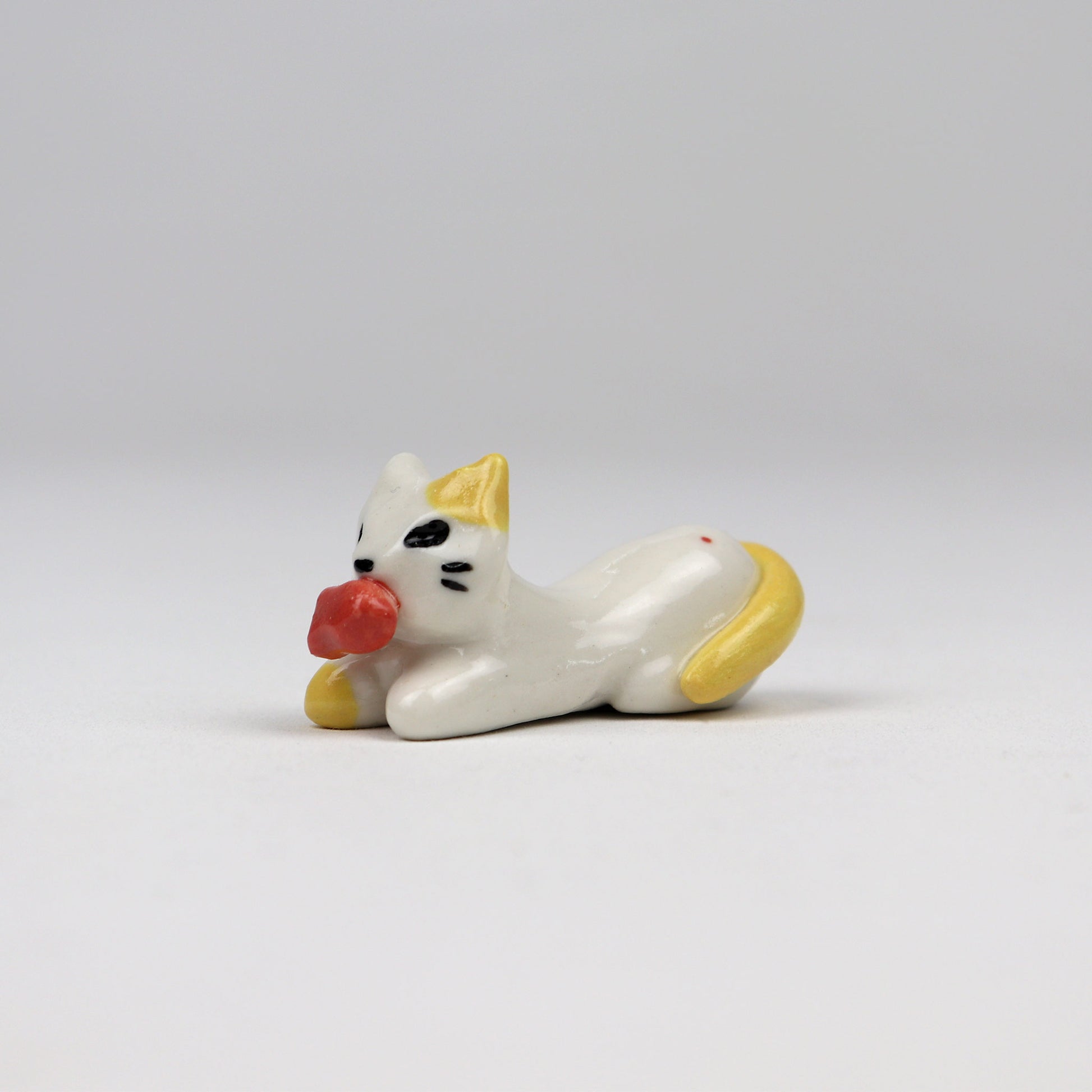 This handmade ceramic cat chopstick holder is both practical and adorable. Shaped like a little cat holding a fish in its mouth, it keeps your chopsticks off the table while adding a bit of character to your meal. This piece is one of a kind, with hand-painted yellow features on a smooth white ceramic body. Simple, sweet, and made with care—perfect for cat lovers who appreciate the little details.
